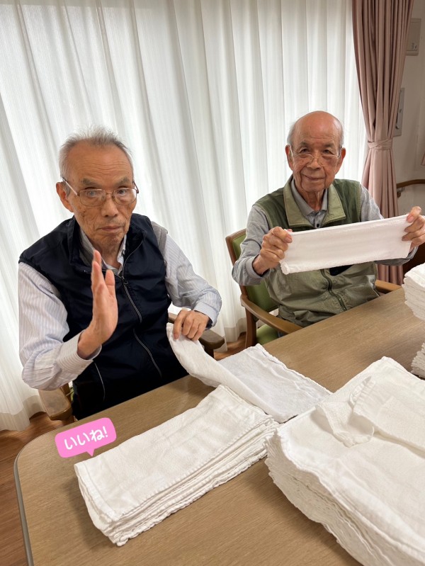 ◉『やるよ〜♬』と、丁寧におしぼりを畳んでくださる男性入居者様♡