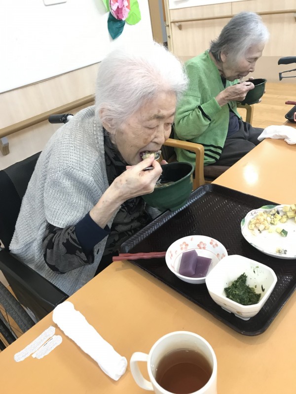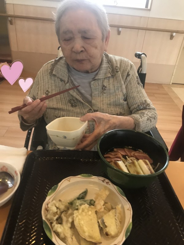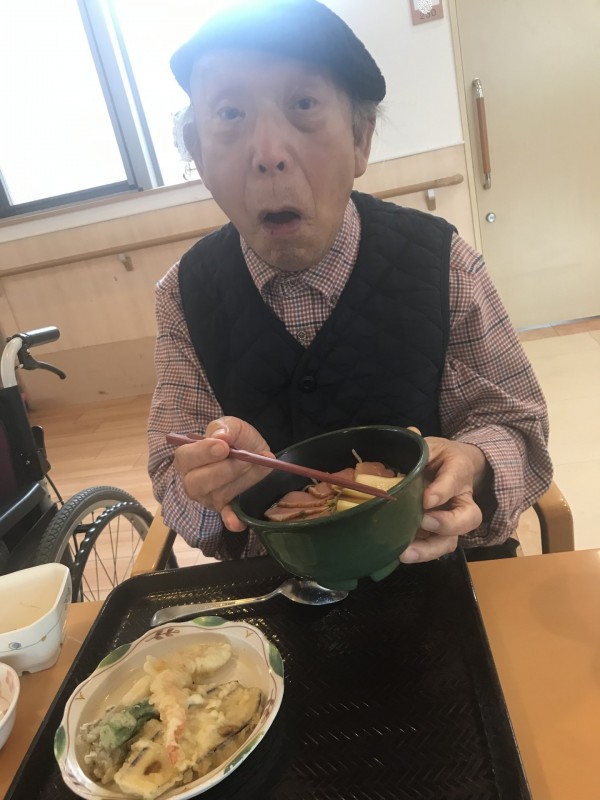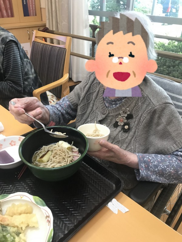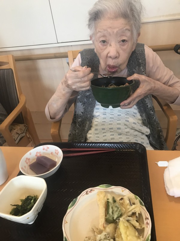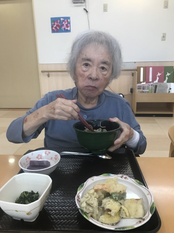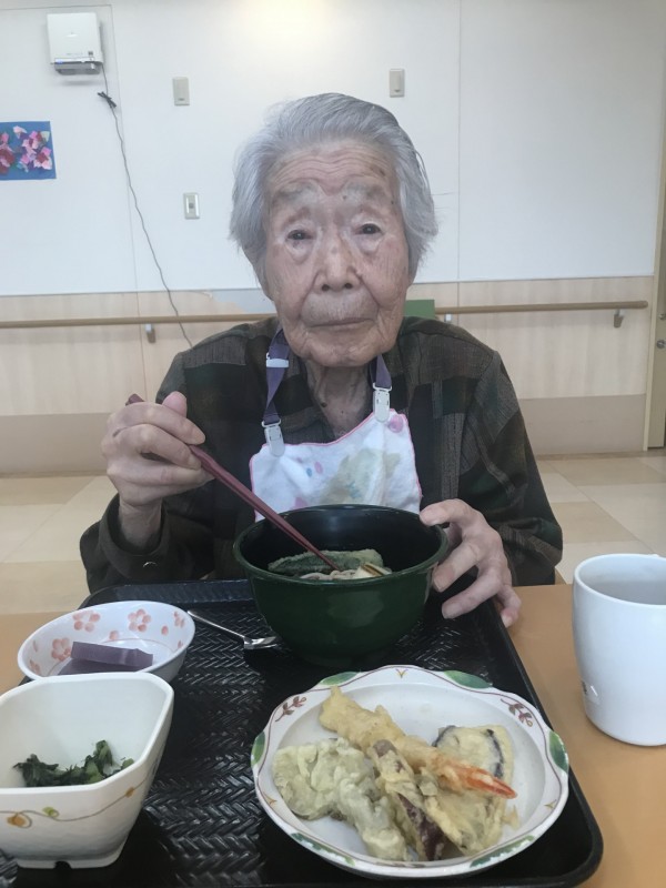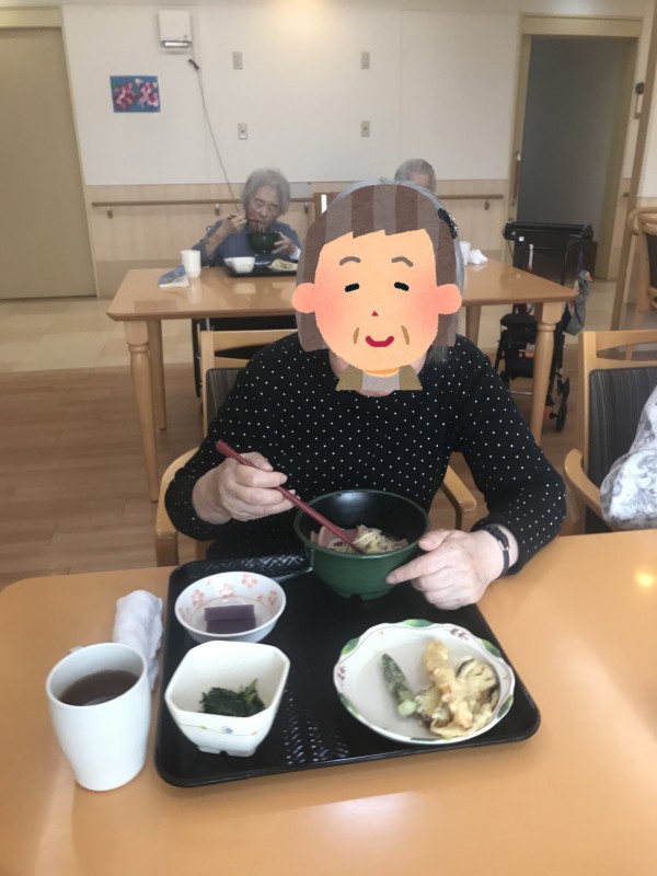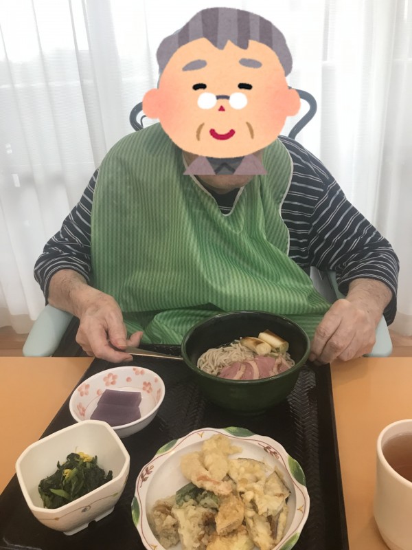 今月は【鴨ねぎそば・天ぷら盛り合わせ・春菊の菊花和え・紫芋ようかん】でした。