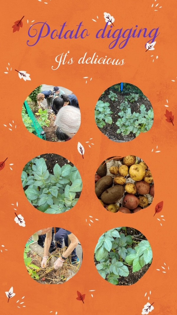 さて、先日、園芸部会の皆さんに「見て見て!」と花壇へご案内いただきました。今年は暑さや日照りの影響で、じゃがいもや枝豆があまりうまく育たなかったので少し気落ちしていたのですが……。