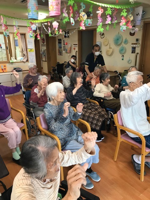 職員と一緒に体操されている入居者様も微笑ましですよね(笑)