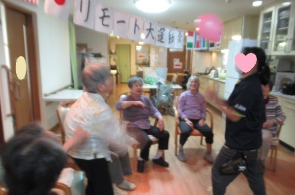 風船バレー、玉入れ、赤青旗あげです(^^)/