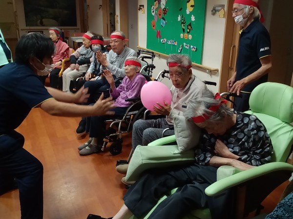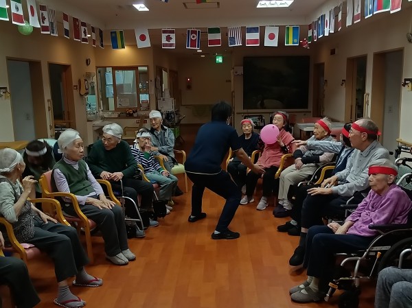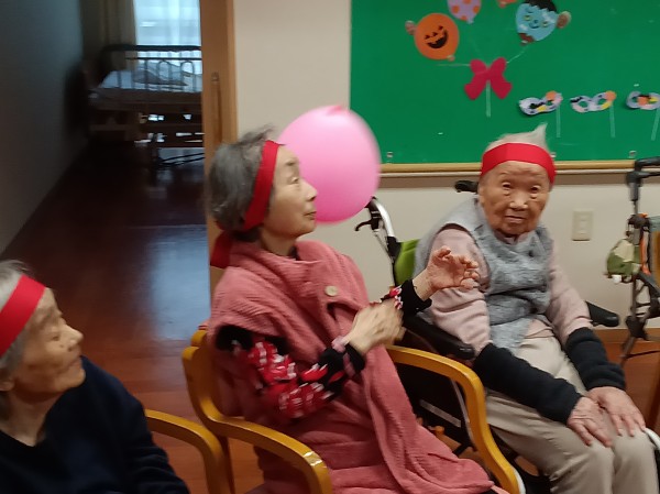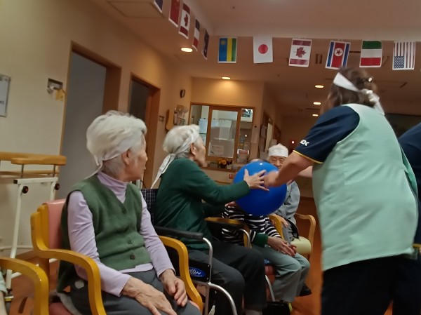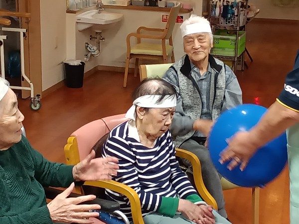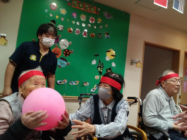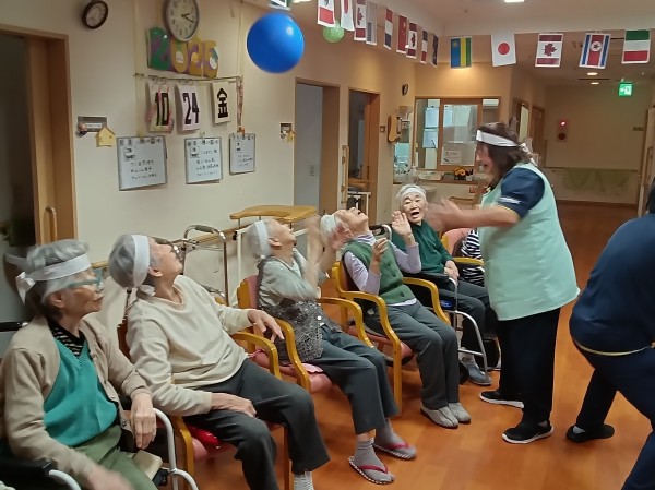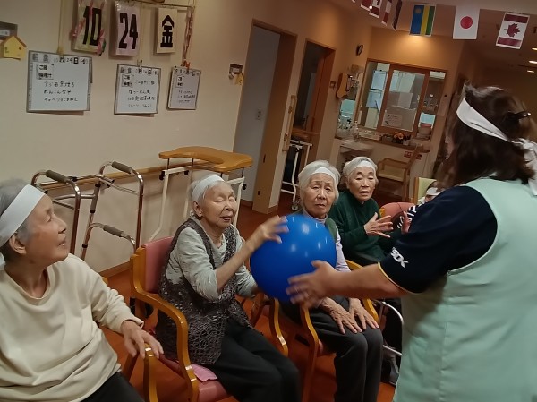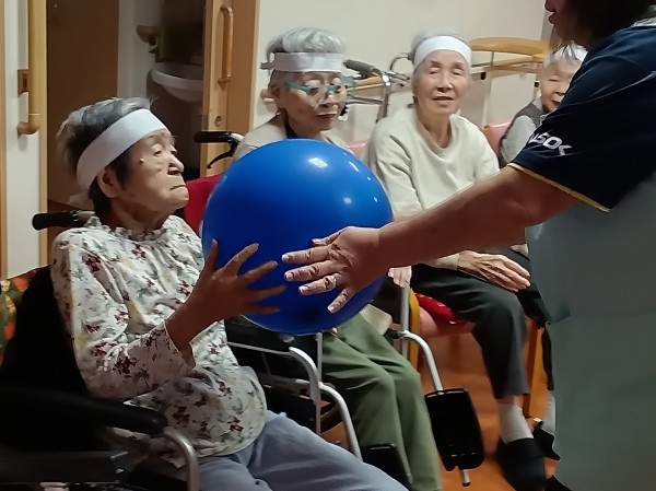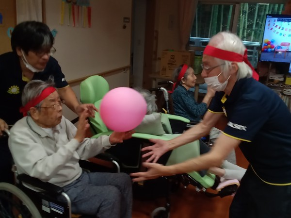 風船を職員、利用者様、職員、別の利用者様
