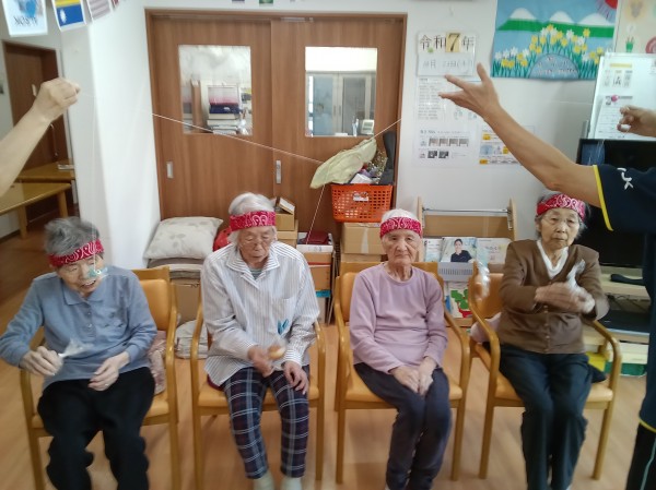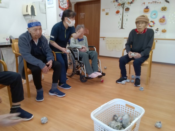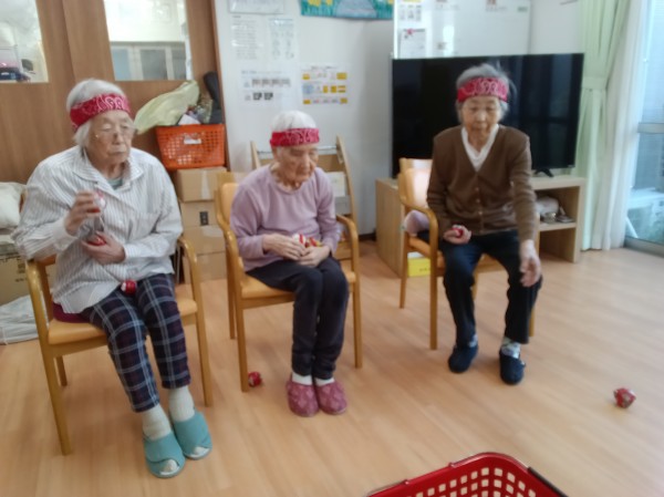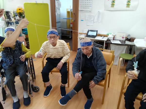 今日は1階・運動会レクを行いました。 そのご様子をお知らせいたします!! 玉入れとパン食い競争を行いました。