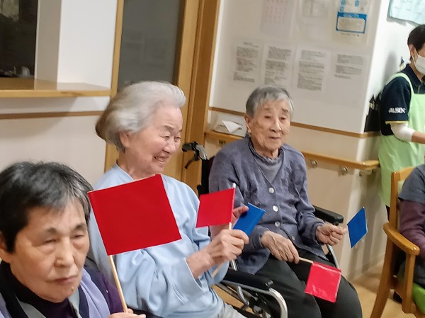 旗揚げゲームも楽しみました(^o^)v赤揚げて〜♪青下げて〜♪