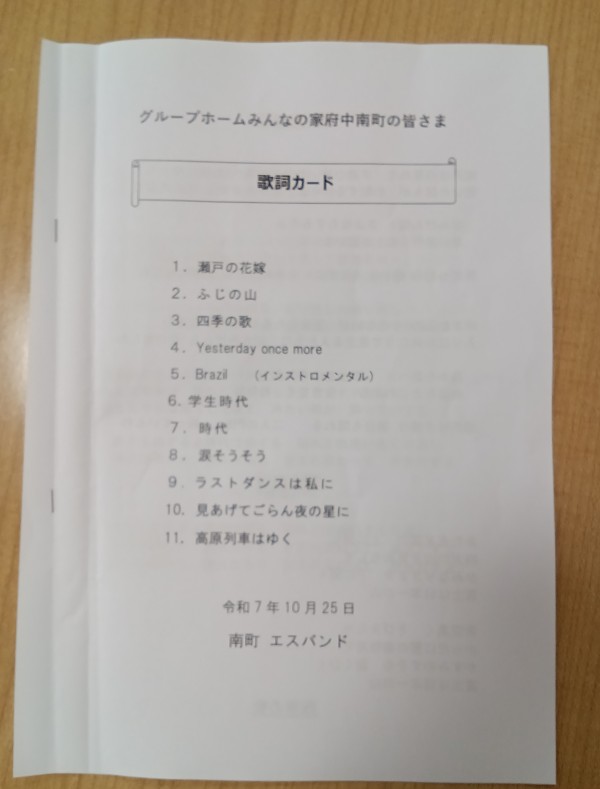 10月25日に地域のボランティアサークル 【エスバンド】 さん がコンサートを開いて下さいました。