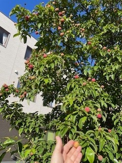 ヤマボウシの赤い実は食べられるとネットで読みました、でも、万が一のことがあっては大変ですので、見るだけにしています。