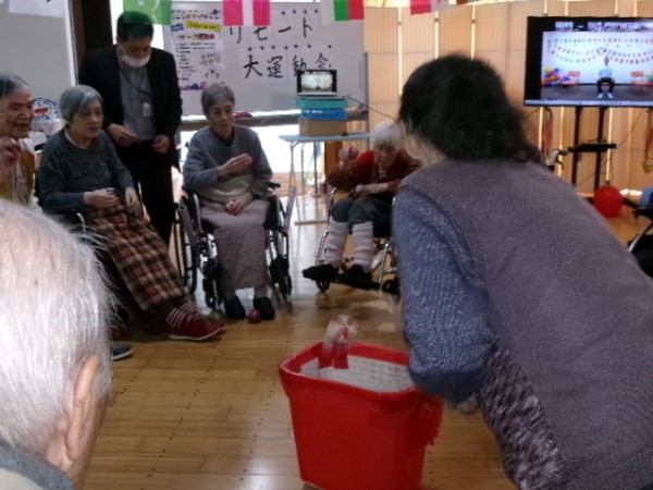 狙いを定めて、皆さま上手に玉入れ成功!