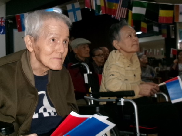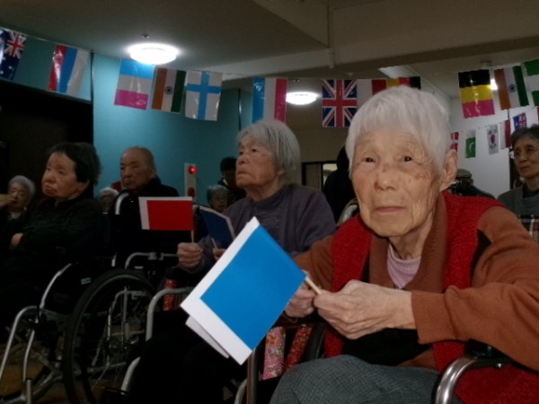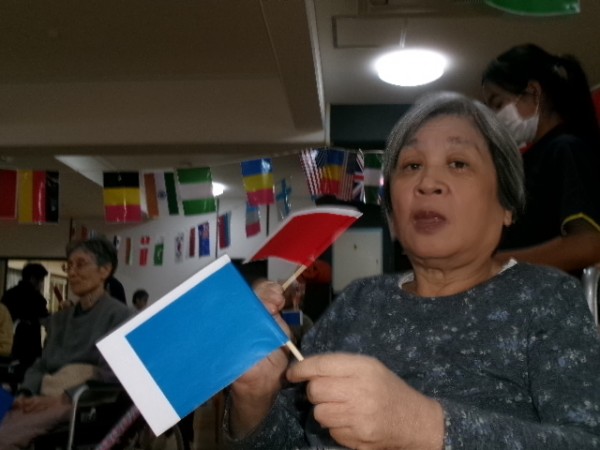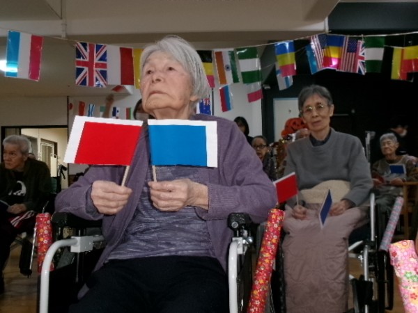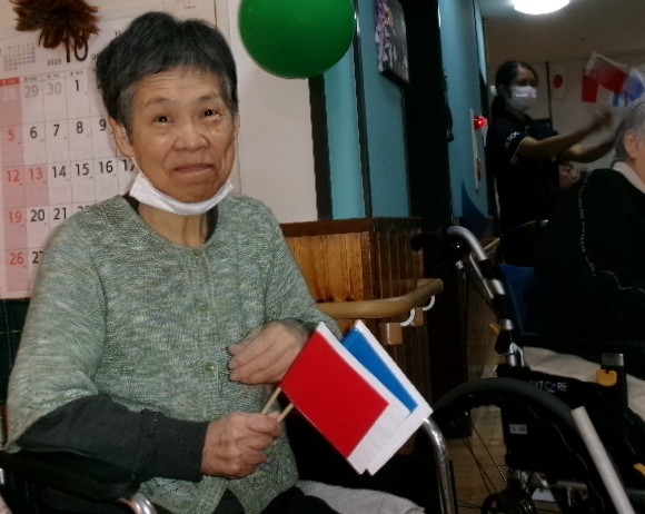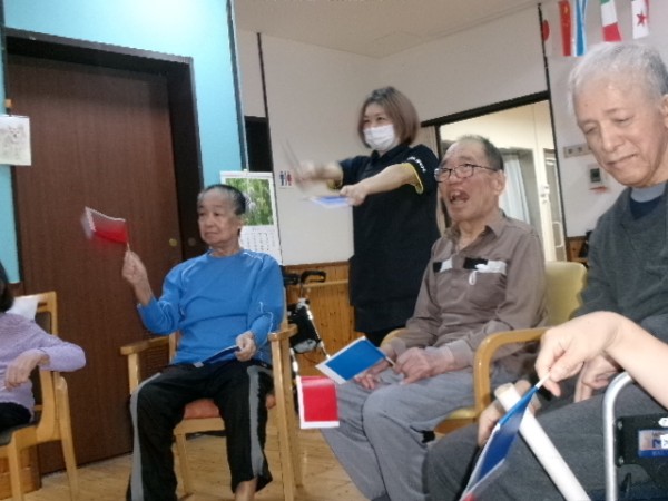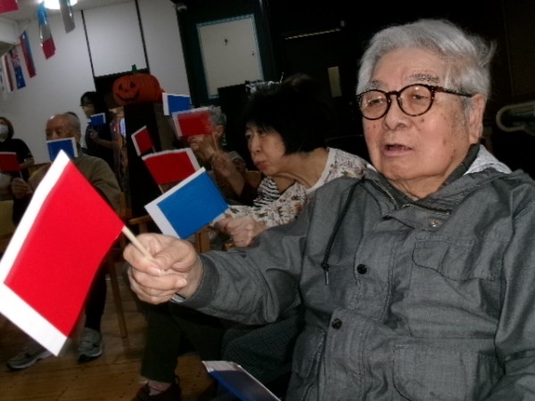 と、号令に従って赤と青の旗を上げ下げします。