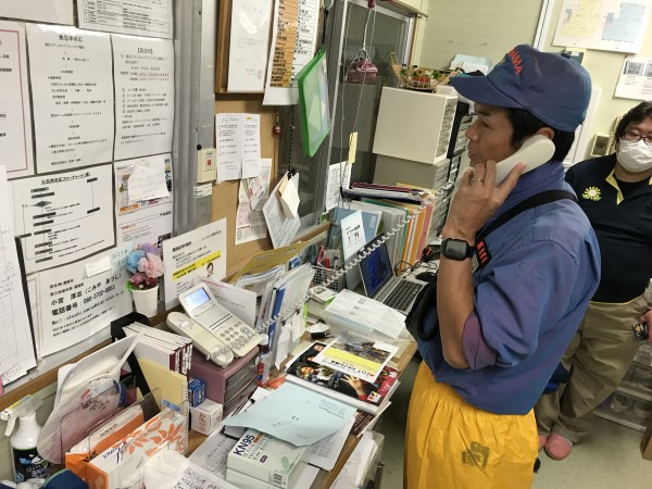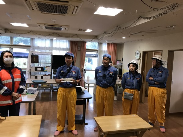 今回は日中帯に地震が発生し2Fのキッチンから出火という想定で行いました。日中帯なので職員さんは各階2名居るので分担して行動しています。