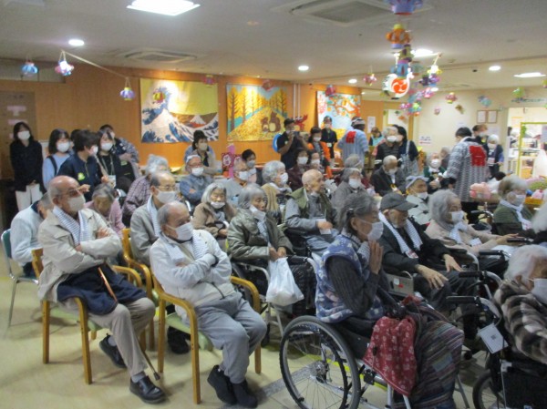 雨天の為、中からの観覧でしたが、演奏を見ようと利用者様