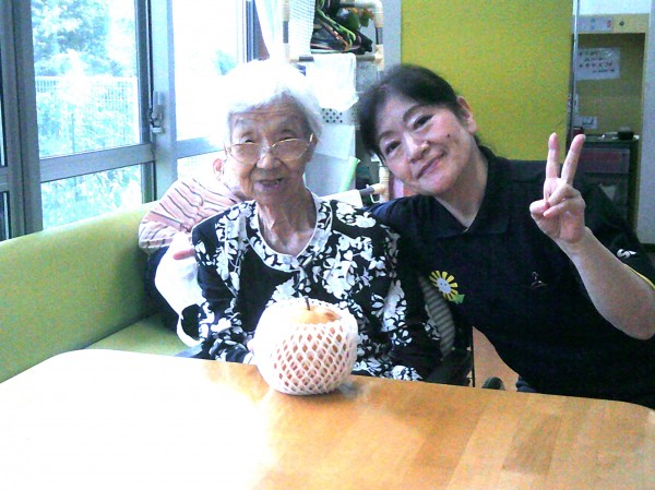 みなさまで梨を召し上がられました(^0_0^) 大きな梨ですね?とビックリされておりました。 美味しいわ!! と嬉しそうに話されました(*^_^*)