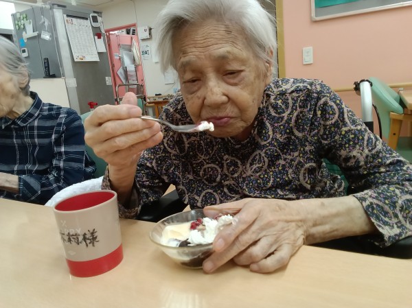 今回は、アイスクリーム入りコーヒーゼリーとオレンジジュースでお祝いでした~♬