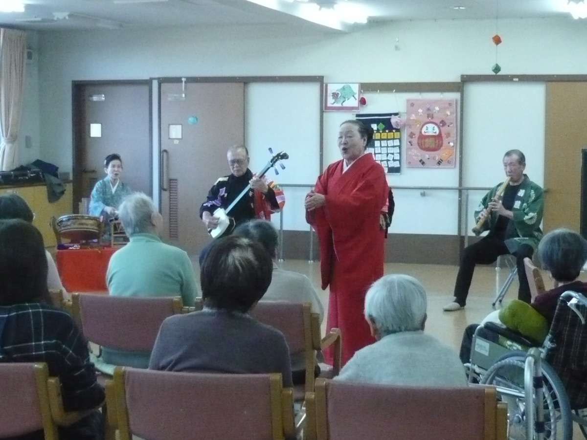 GHみんなの家松伏では毎年1月になると、ボランティア様をお呼びして獅子舞や民謡演奏をしていただいております。