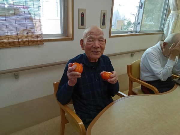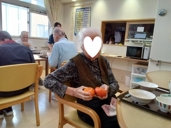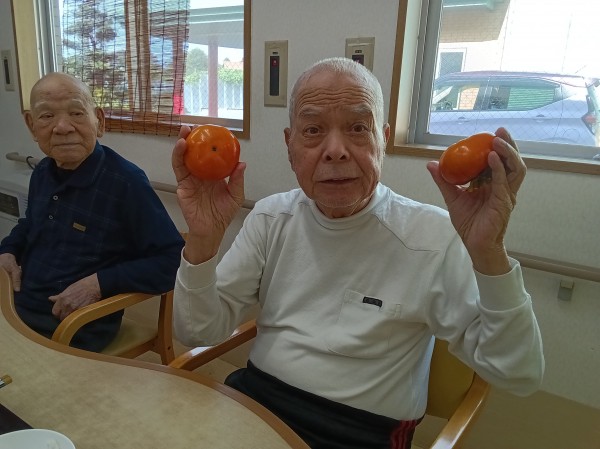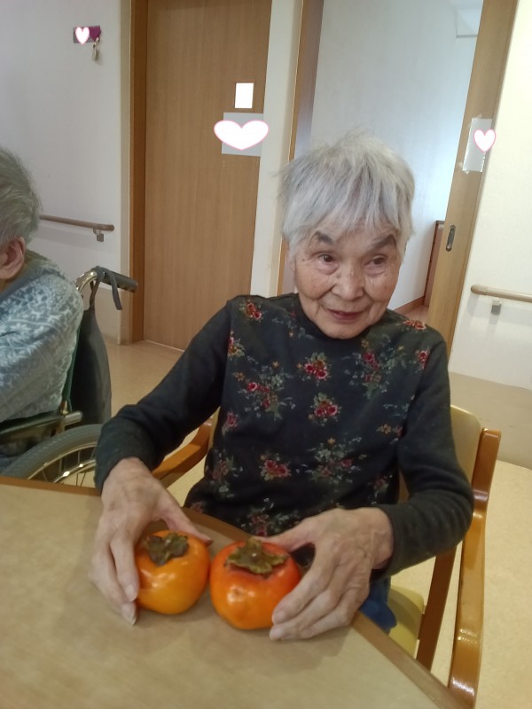 大きな柿を見て「秋だね」と笑いながら話しておりました。