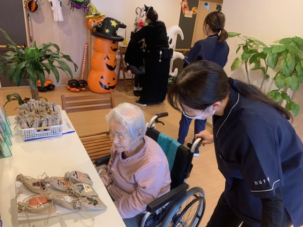職員は、カチューシャやメガネを付けたり、ある職員は魔女姿になってくれました。