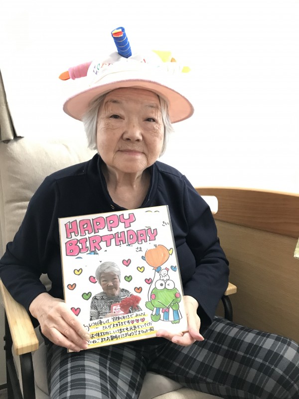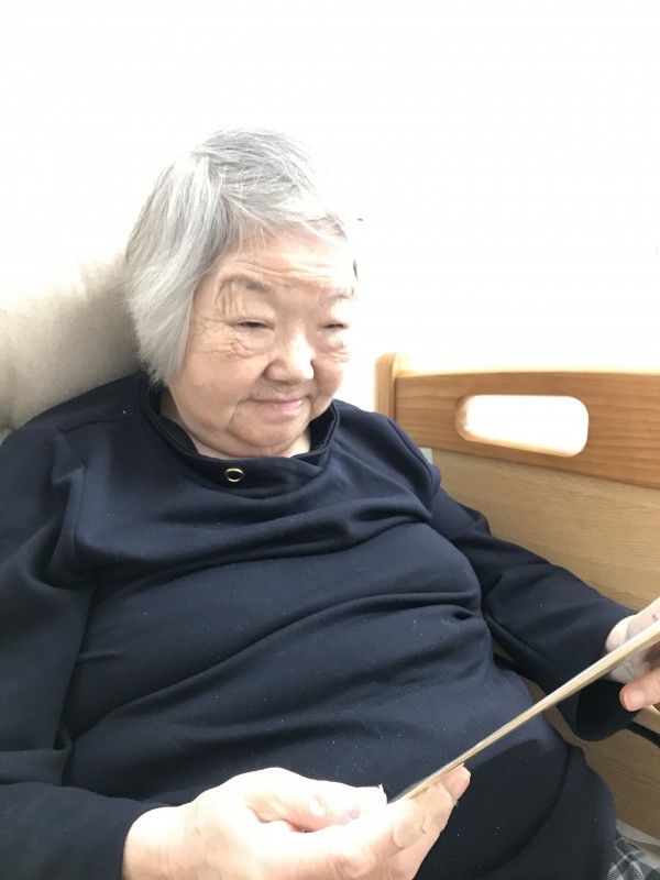 お渡しした色紙をとてもうれしそうな様子で見つめるご利用者様。