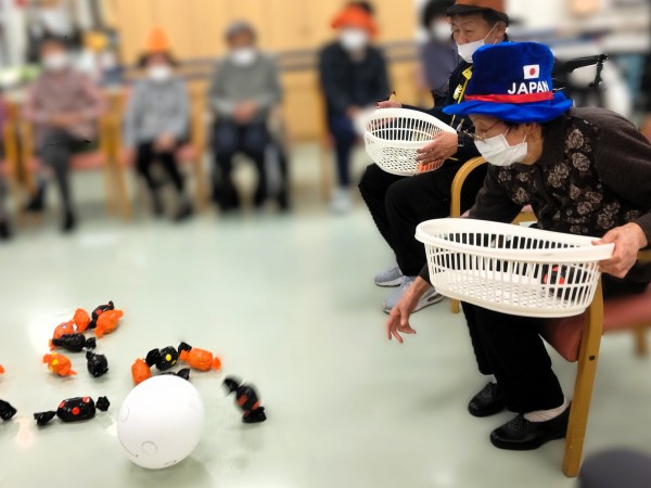 お化けに飴を!と題して帽子やカツラを被ってプチ仮装をしながらゲームをしました!