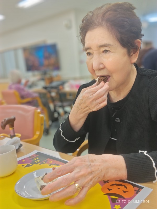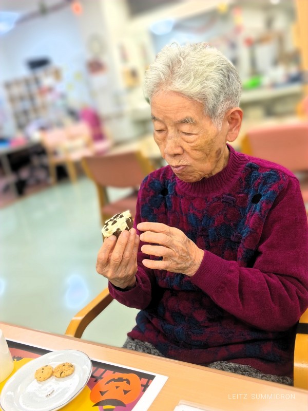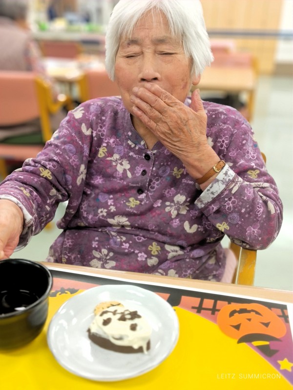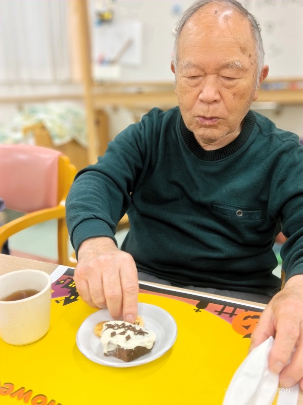 本日のおやつは????おばケーキとプチせんべいお茶は紅茶をご提供????