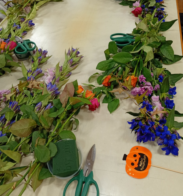 フラワーアレンジメントで活けた花は、自身の居室へ持ち帰られ、飾られていました。