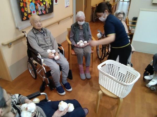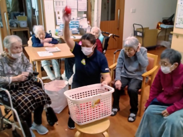 グループホームみんなの家・中野鷺宮でリモートの運動会で「紅白の玉入れ」開催