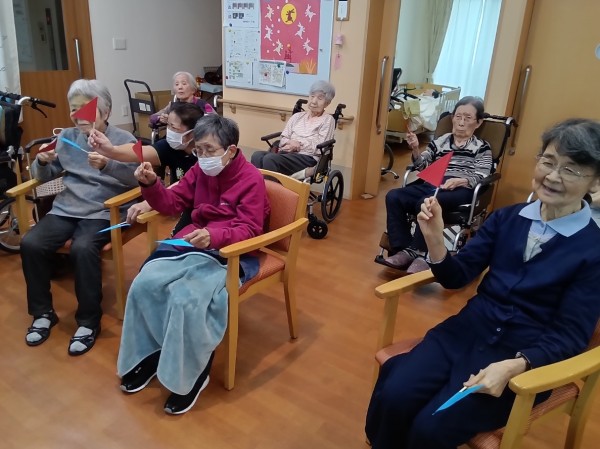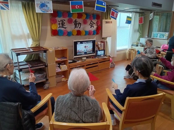 グループホームみんなの家・中野鷺宮でリモート大運動会「旗上げ」「閉会式」
