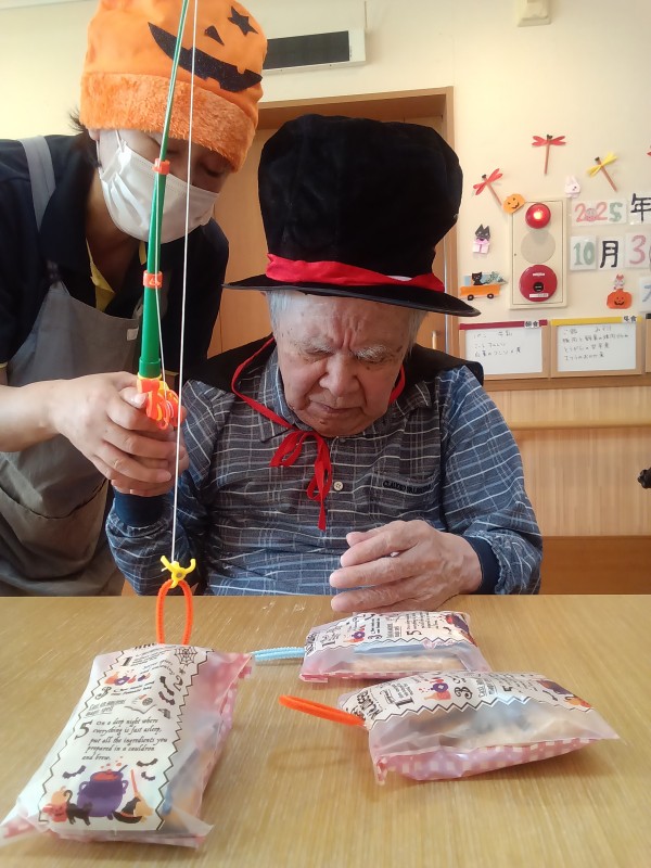 仮装を楽しんだ後は、皆で楽しめるお菓子釣りゲームで盛り上がりました(*^-^*)