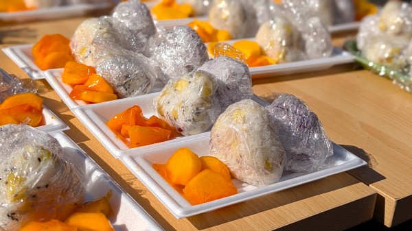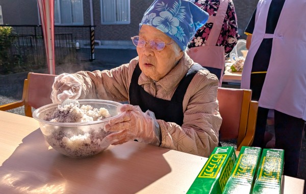 先日、畑で獲れたサツマイモのおにぎりとゆかりおにぎりの2種類をご用意☆