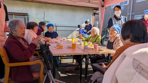 みんなで作って、みんなで外で食べる。