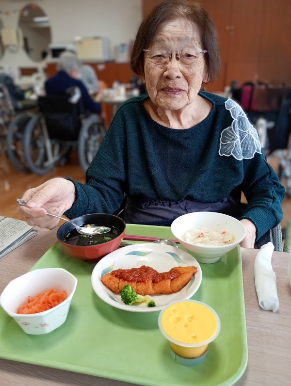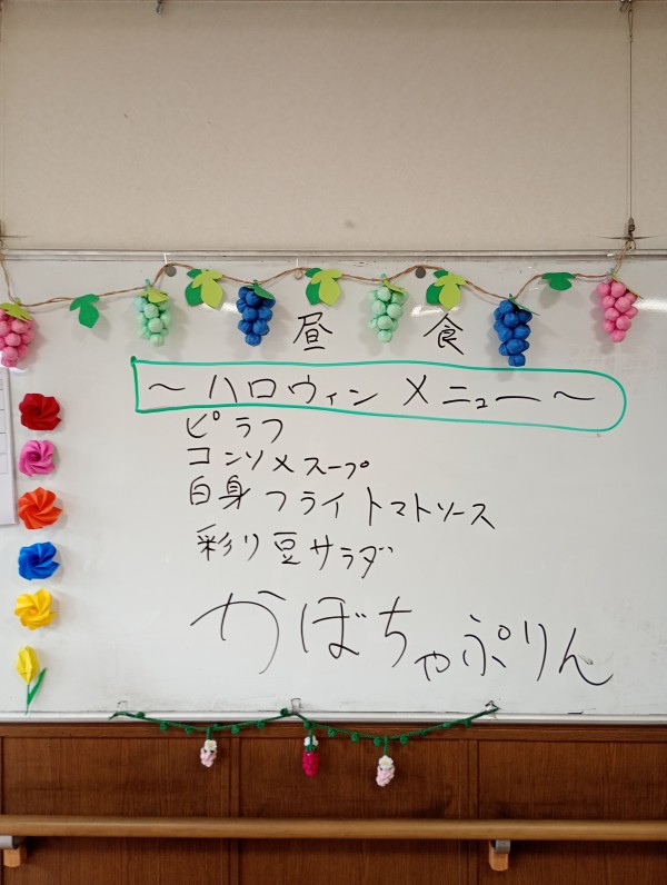 この日の昼食は特別なメニューでした。ハロウィンメニューなので、かぼちゃのプリンが付いていました。