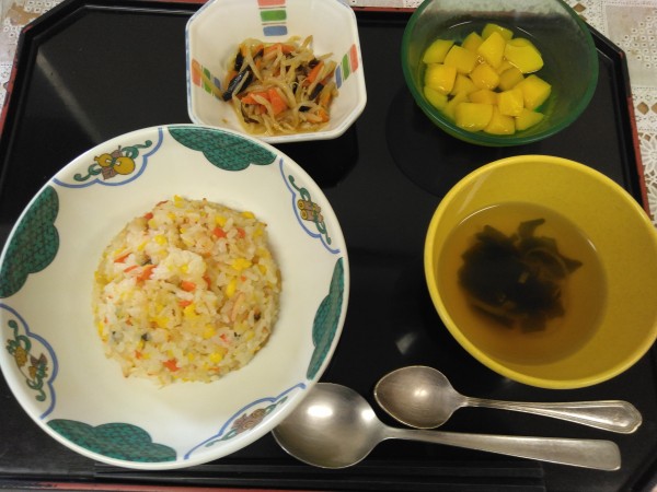 お昼のメニューは「筍入りチャーハン」( ^)o(^ )