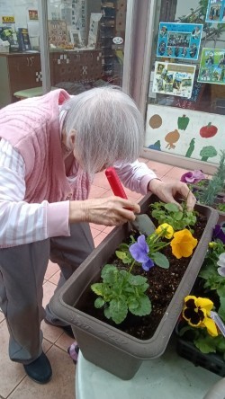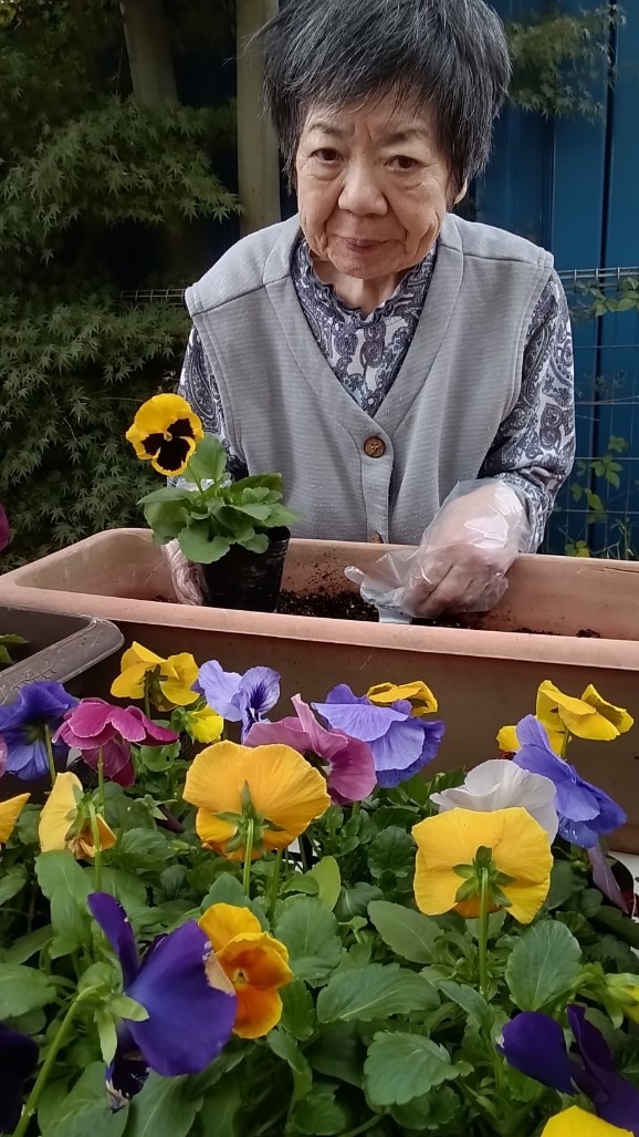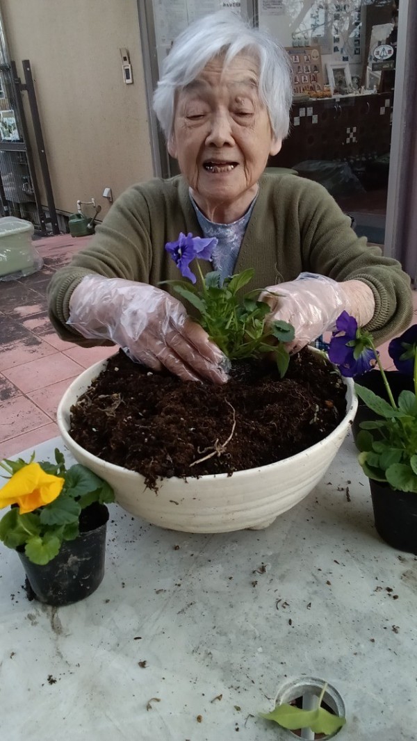 みんなでパンジーのお花を植えました