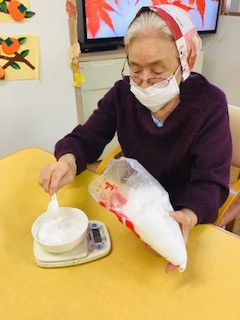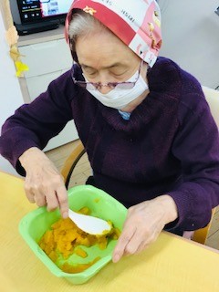 続いて、、ゆでたカボチャをつぶしましょう(^_-)-☆