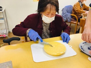 さて、冷やしてしっとり固まったケーキを、切り分けていただきますよ♡