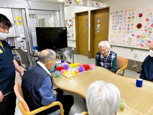 皆様の前で、ホーム長に紹介されると「こんな事するなんて~」ととても恥ずかしそうに手でお顔を隠されていました♡