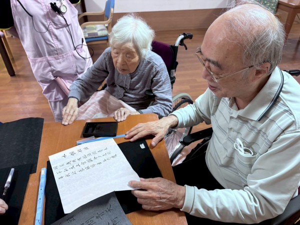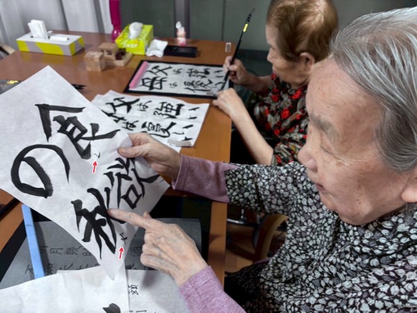 職員が書いたものを見て、先生がとめ・はね・はらいなどをご指導してくれています。