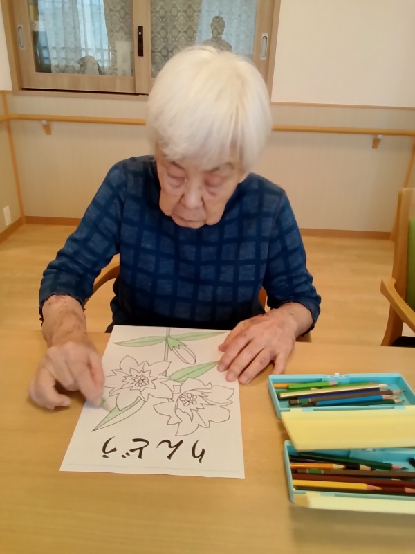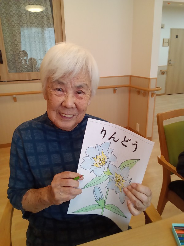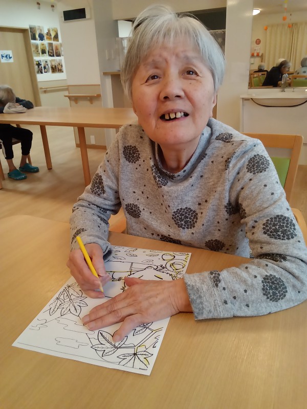 今回は秋の味覚、お花の塗り絵を塗っていただきました!