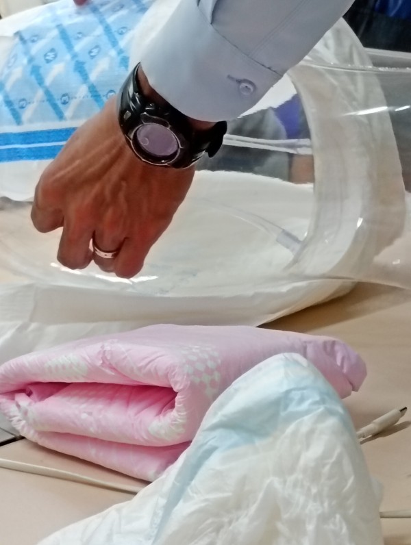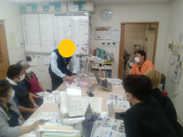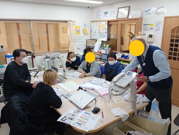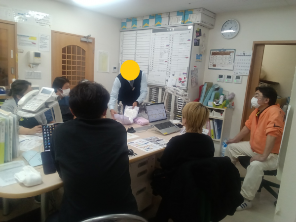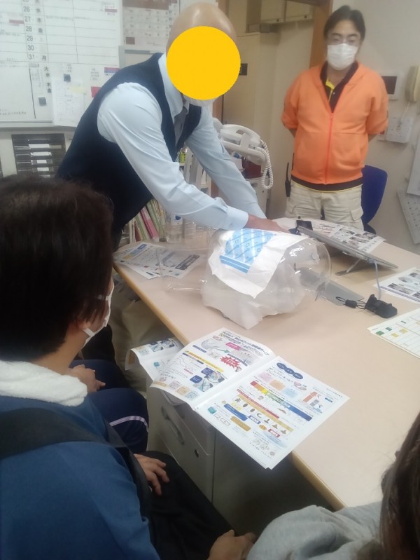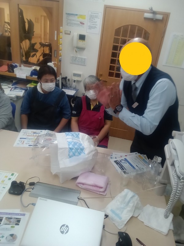 オムツの正しいつけ方を白十字の方が施設に来てくださり、直接職員へ講習をしていただいております。