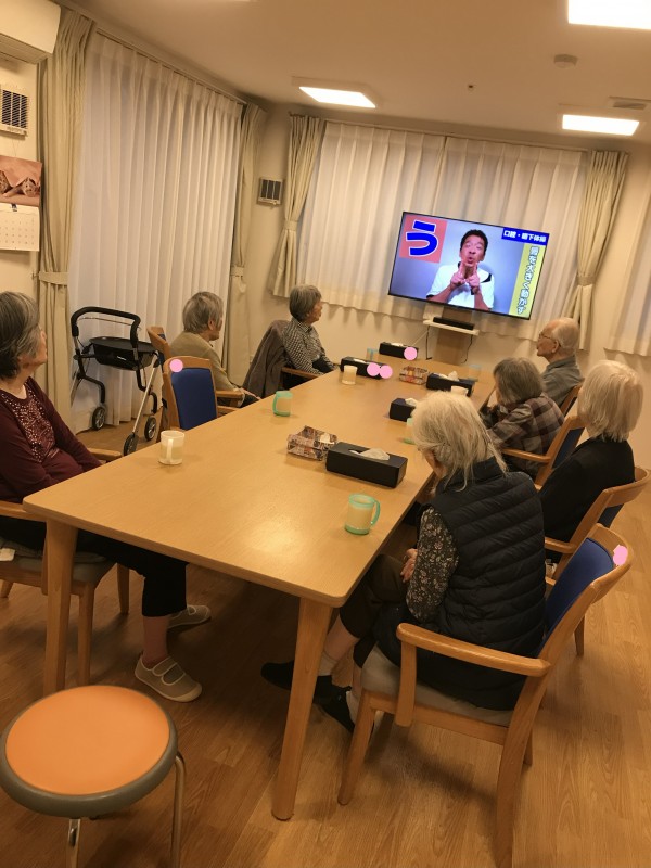食事の前は毎回行っている口腔体操です!発声もしますがお顔のマッサージもしますよ!