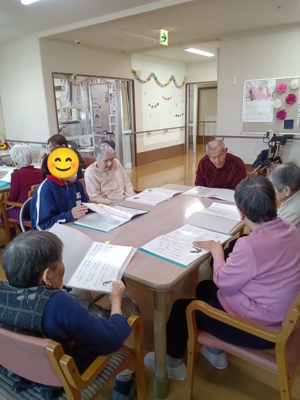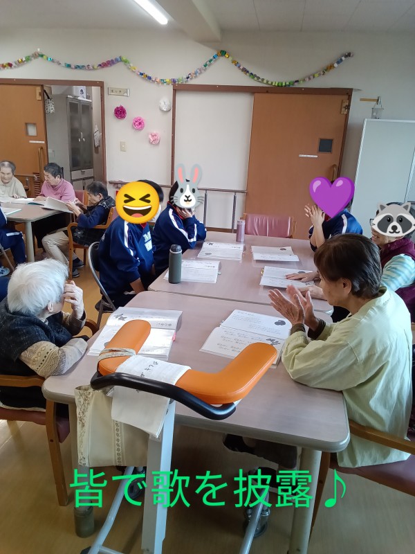 本日は中学生の方々と一緒に秋にちなんだ歌を歌いました・・・スタッフと歌っている時の顔とは違う顔を見せて頂きました。(^^♪