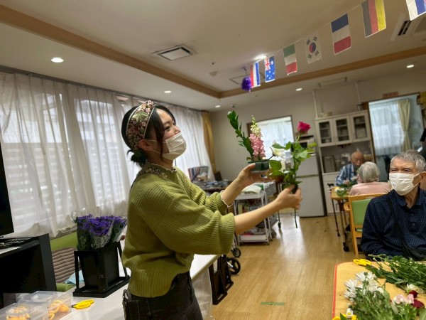 などと、自然と会話も弾み、笑顔があふれる時間でした。花を手にすると皆さんの表情が生き生き!お花の力ってすごいですね。