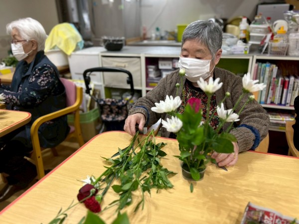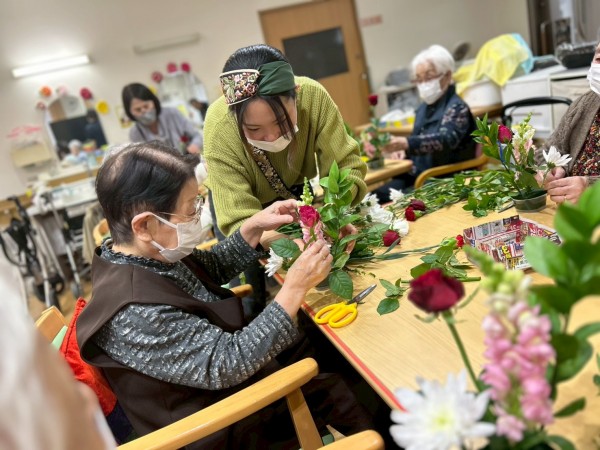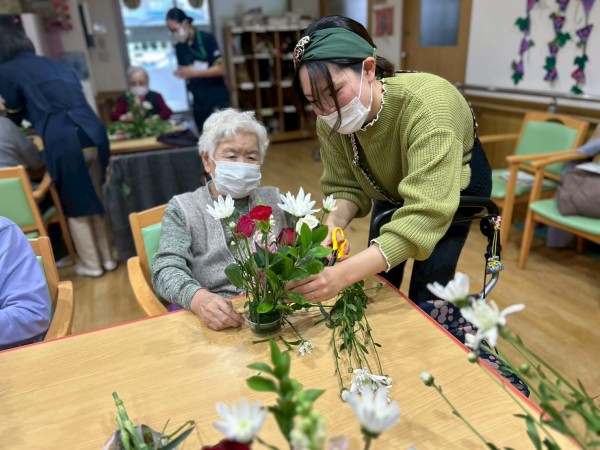 ここデイサービスでは温かい室内でほっと心が和むイベントが続いています!「フラワーアレンジメント」「読み聞かせイベント」をご紹介させて頂きます♪