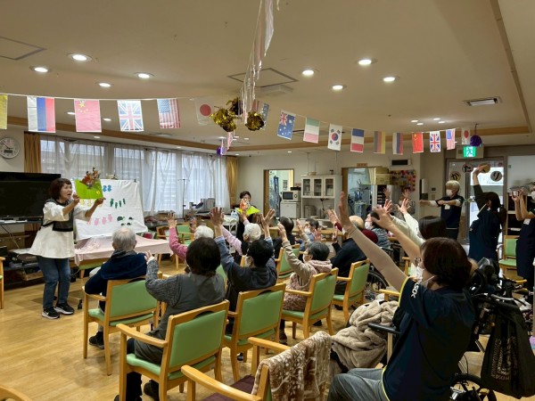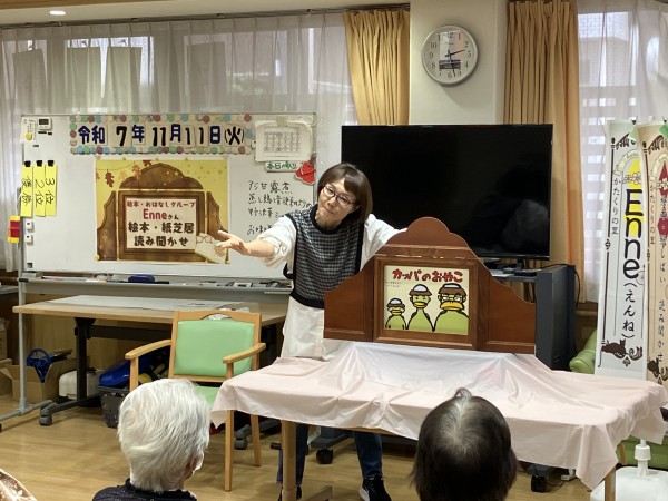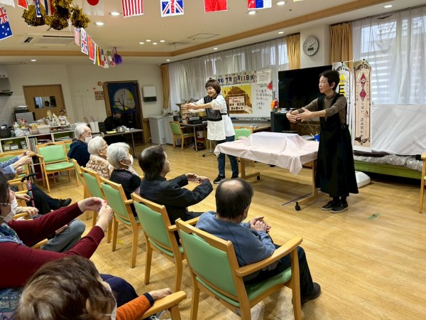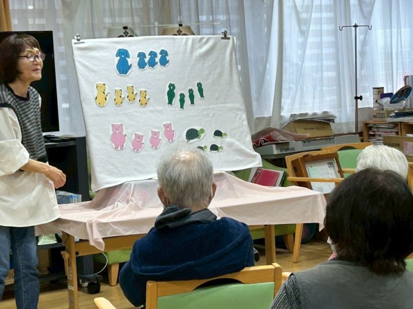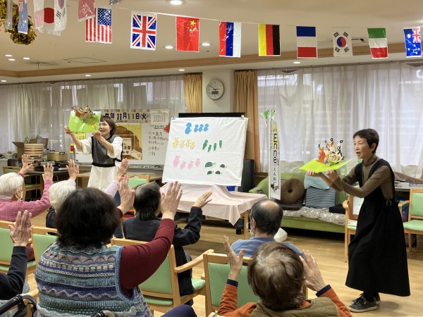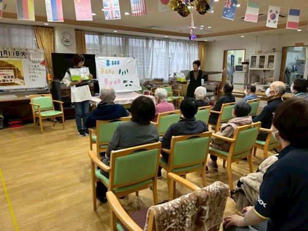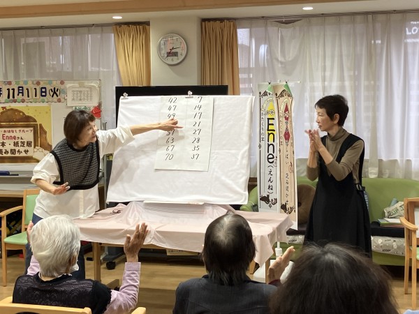 「今日は3歳から5歳くらいまで若返って聞いてくださいね♪」と声がかかると、利用者さまの顔にふっと笑みがこぼれ、会場が一気に柔らかい雰囲気に包まれました。