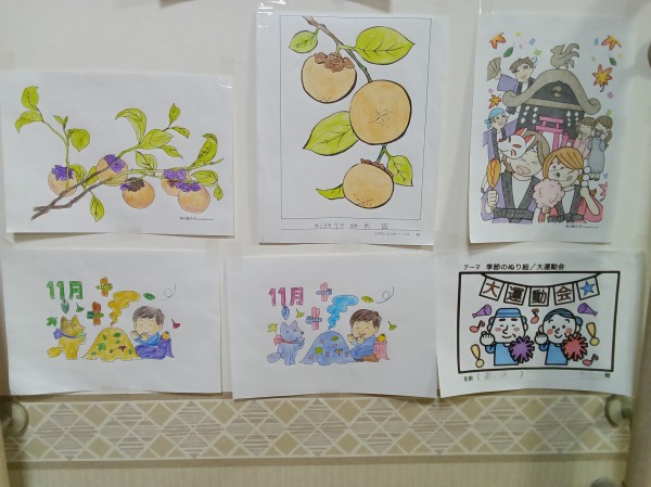 秋の景色がフロアに飾られています。