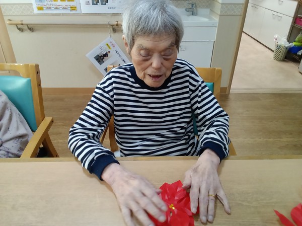 ご入居者様に冬の花などの飾りを作っていただきました。