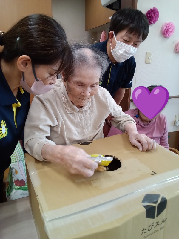 本日は全回中学生の方々と行ったお菓子のつかみ取りご入居者様編をお送りいたします。盛に盛り上がった1日でした(#^.^#)