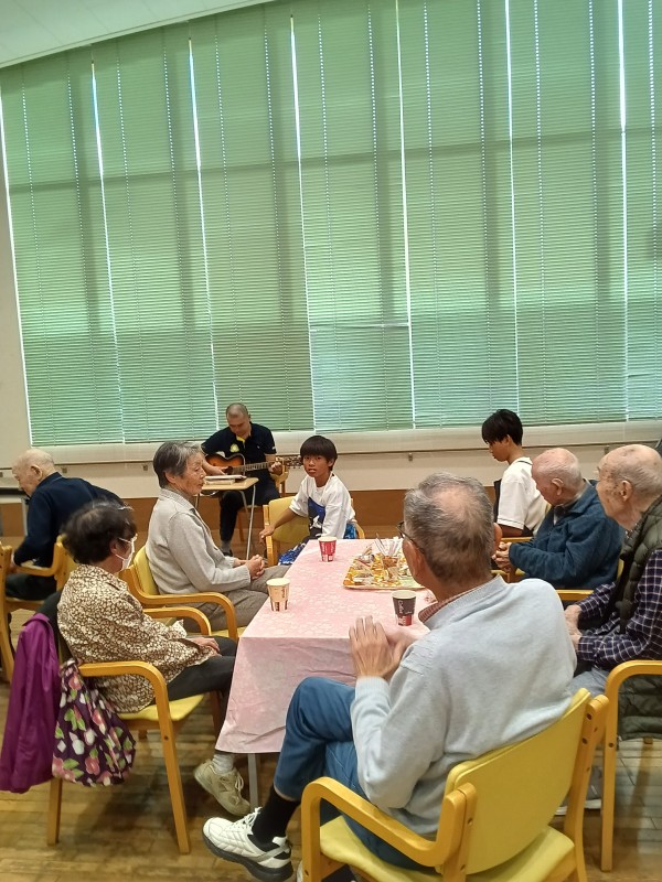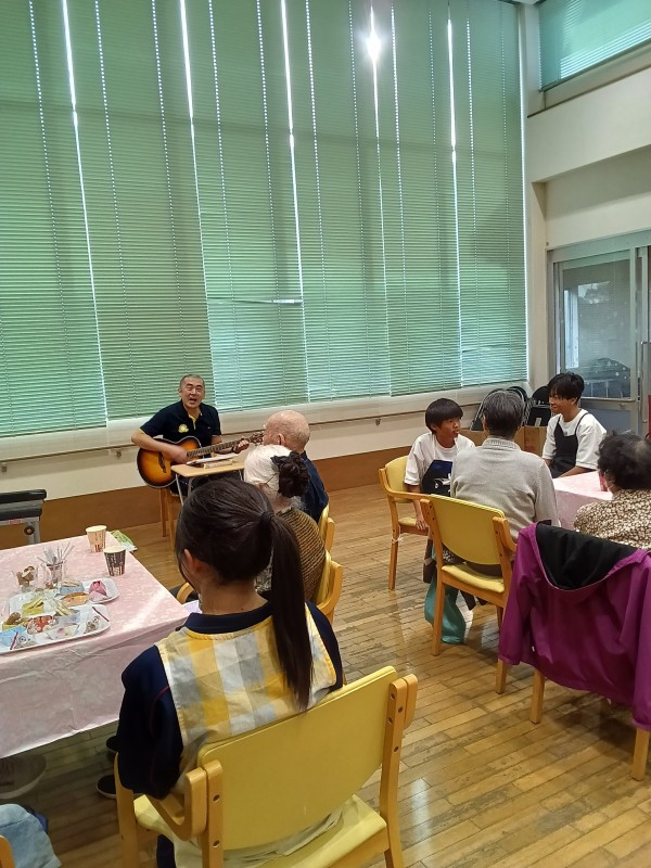 ギターの生演奏で演歌や童謡などを唄い、楽しい時間を過ごす事が出来ました。