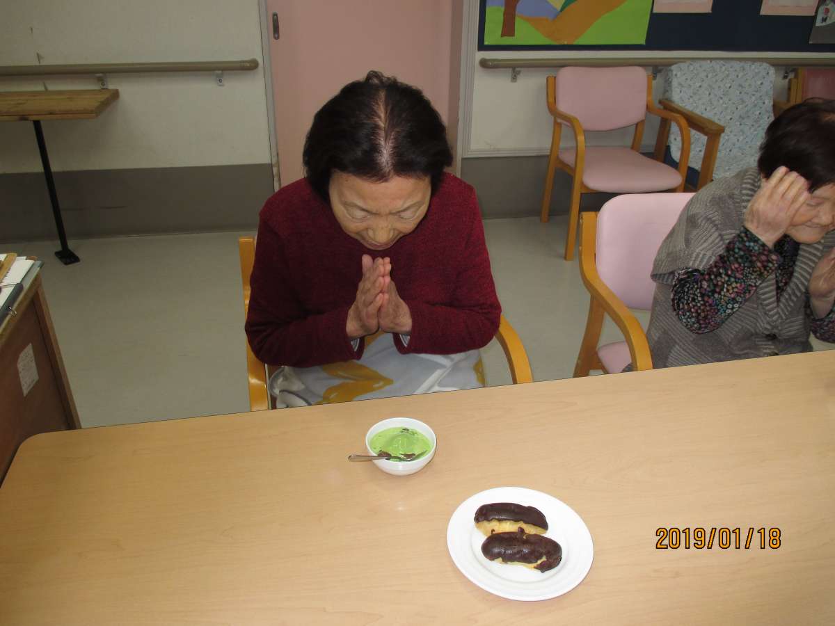 ぜんざいと エクレアでお誕生日会を行いました。