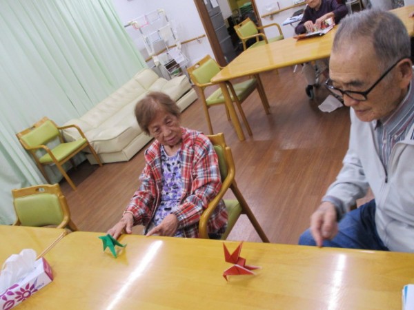 今日は折り紙で動物や鳥を折りました。 折っているご様子をお知らせいたします!! スタッフに教えてもらいながら真剣に作られておられました????