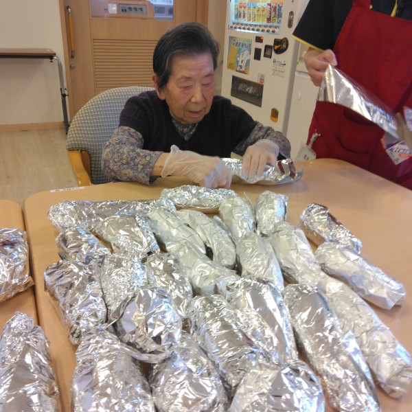 目の前にアルミホイルにまかれたお芋たちがどんどん出来上がっていきます