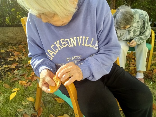 外でお茶を飲んだり、おしゃべりしたり…はたまた、童心に返って落ち葉拾いなんて方もいました(^^♪